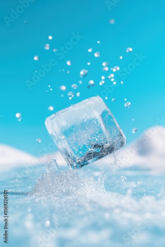 Obraz premium Refreshing ice cube in splashing water