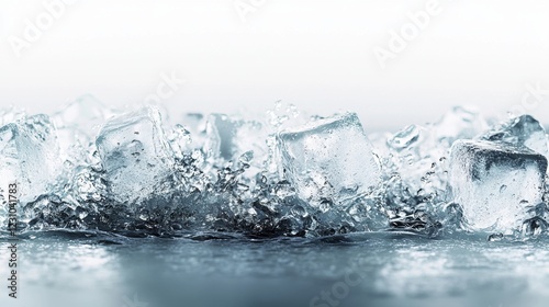 Obraz premium Refreshing Ice Cubes Splashing on a Smooth Surface with Water Droplets