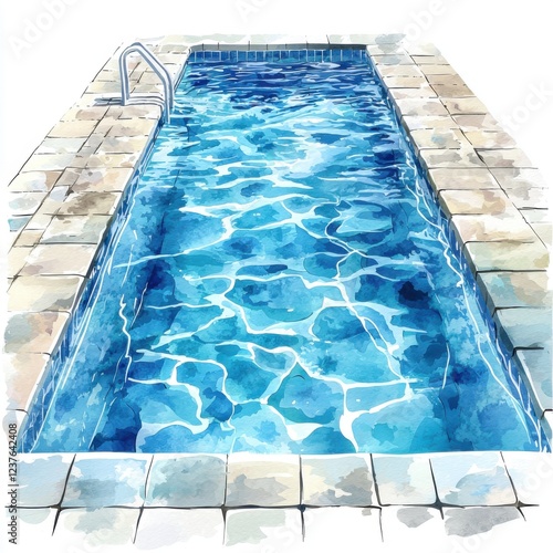 © Thanaporn, Obraz premium Refreshing summer pool scene backyard oasis digital art calm waters aerial view serenity and relaxation
