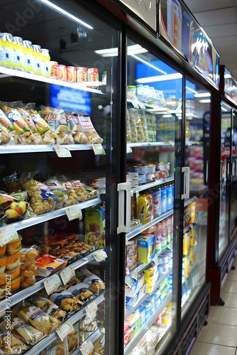 Fototapeta premium Refrigerated Food Display in Convenience Store