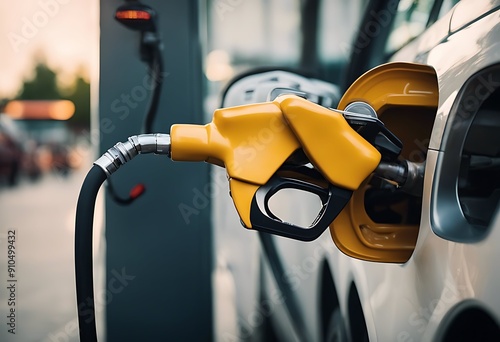 Fototapeta premium refueling car station gasoline petrol pump fuel can photo used transportation industry concept gas hand esel energy vehicle oil tank automobile nozzle