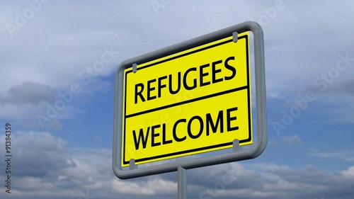 © Riko Best, Obraz premium Refugees / Welcome sign