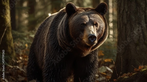 Fototapeta premium Regal and intimidating bear. AI generated
