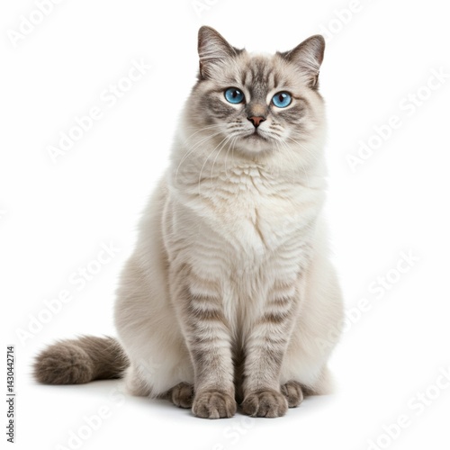 Fototapeta premium Regal Blue Eyed Cat with Tabby Markings in Elegant Stance