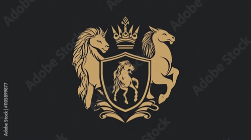 Obraz premium Regal Crest Featuring Unicorn Horse and Crown