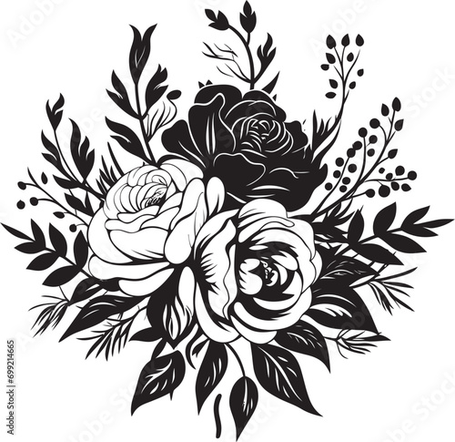 Fototapeta premium Regal Floral Medley Black Bouquet Emblem Chic Petal Fusion Decorative Black Icon