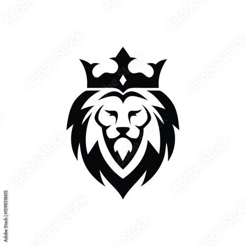 © pixxshop, Fototapeta premium Regal lion head with crown king majestic