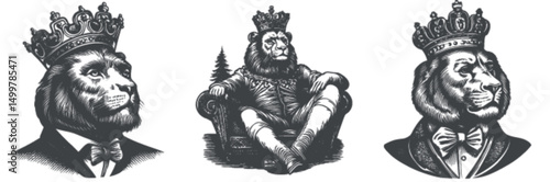 Fototapeta premium Regal Lion Illustrations in Vintage Engraving and Woodcut Style