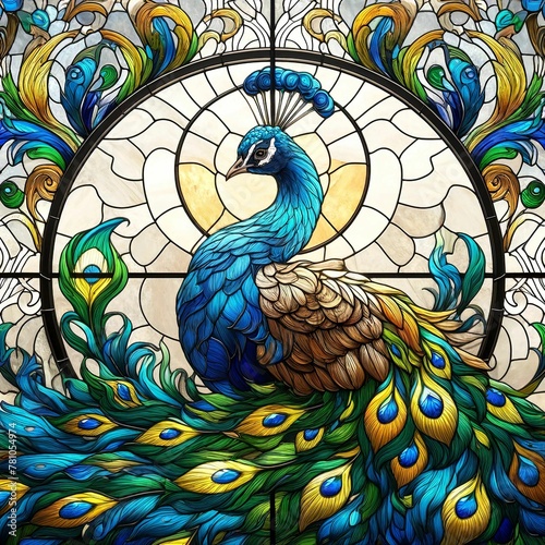 Obraz premium Regal Peacock Stained Glass Artwork,