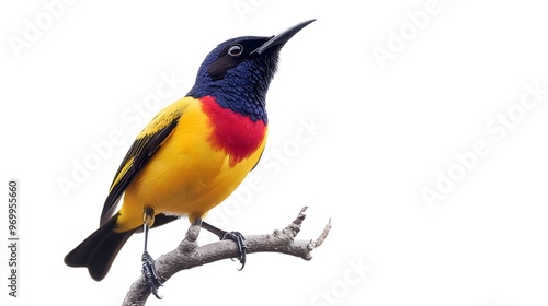 Fototapeta premium Regal Sunbird Perched on a Branch on a White Background, Realistic Photo,...