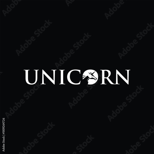 Obraz premium Regal Unicorn Logo Design with Crown and Laurel in Elegant Typography