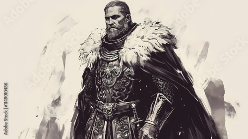 Fototapeta premium Regal warrior in ornate armor and fur cape. Stalwart. Illustration