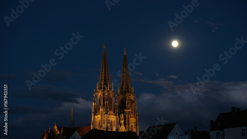 Fototapeta premium Regensburg chathedral at full moon