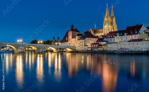© Rainer, Fototapeta premium Regensburg in der blauen Stunde