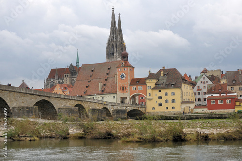 © hal_pand_108, Fototapeta premium regensburg, panorama dall'elba con brückturm e duomo