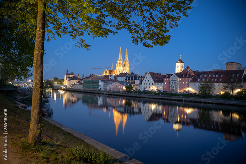 Fototapeta premium Regensburger Dom an der Donau in der blauen Stunde