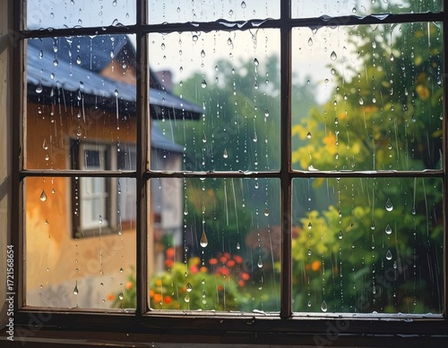 Naklejka premium Regentropfen laufen langsam an Fensterscheiben herunter.