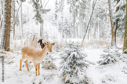 Fototapeta premium Reh im Winter im Wald / Wildpark nah wild