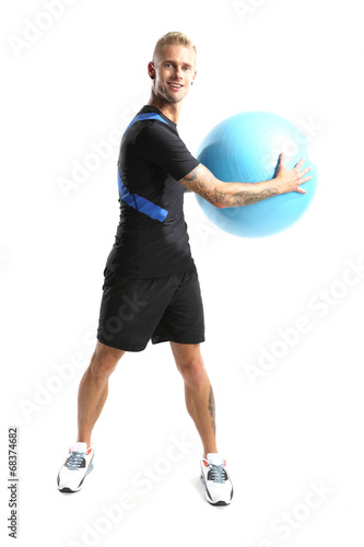 Naklejka premium Rehabilitacja , mężczyzna ćwiczy na piłce