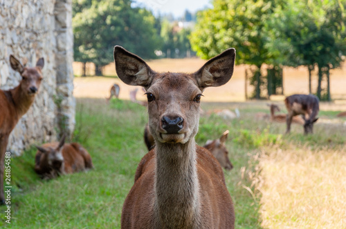 © kobra78, Fototapeta premium Rehe im Gehege auf der Wiese im Sommer