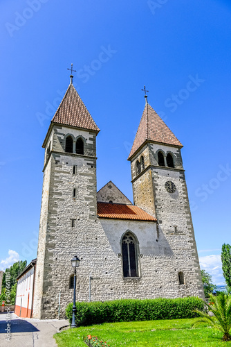 Fototapeta premium Reichenau, Insel Reichenau, St. Peter und Paul, Kirche, Doppeltürme,...