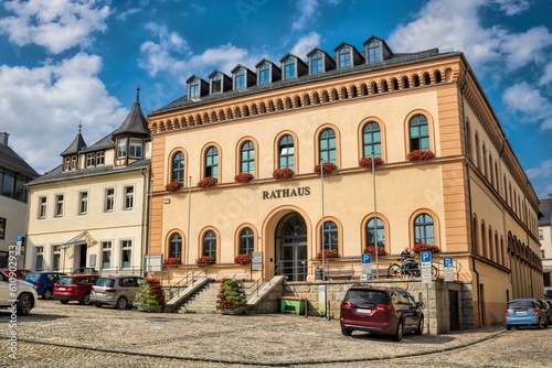 © ArTo, Naklejka premium reichenbach, deutschland - stadtpanorama mit altem rathaus