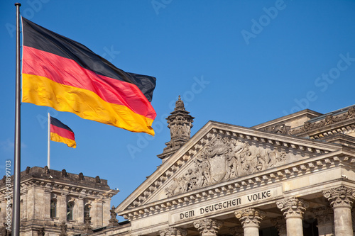 Obraz premium Reichstag - Bundestag in Berlin - Deutschlandfahne
