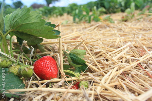 Naklejka premium Reife Erbeere im Stroh