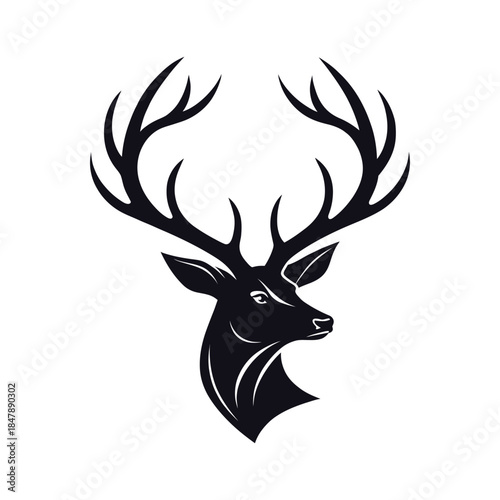 © Hossain, Naklejka premium reindeer antlers attached silhouette logo vector line art logo design