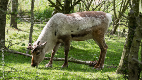 Fototapeta premium Reindeer Grazing on Grass