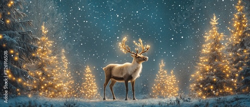 Fototapeta premium Reindeer in a snowy forest christmas theme scenic nature winter wonderland magical atmosphere festive spirit