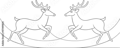 Fototapeta premium Reindeer one line continuous banner. Line art animal deer christmas concept...