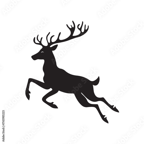 © Hajrot, Fototapeta premium Reindeer silhouette, majestic winter deer, Christmas forest animal, elegant wildlife design, snowy nature illustration, festive holiday artwork, wild reindeer vector, peaceful woodland scene
