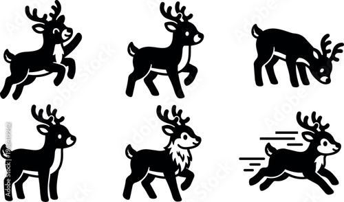 Fototapeta premium Reindeer silhouettes in motion vector set