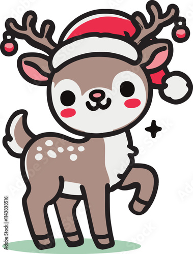 © Mimizuzuhaha, Naklejka premium Reindeer wearing christmas santa hat with plain background