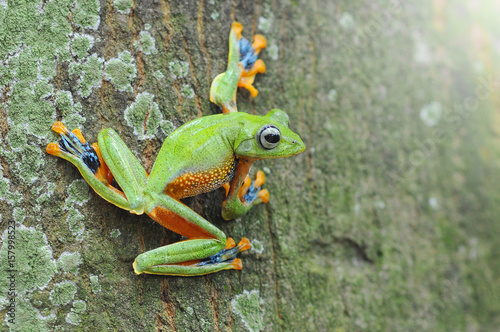 © andri_priyadi, Fototapeta premium Reinwardt's Flying Frog on Tree Trunk