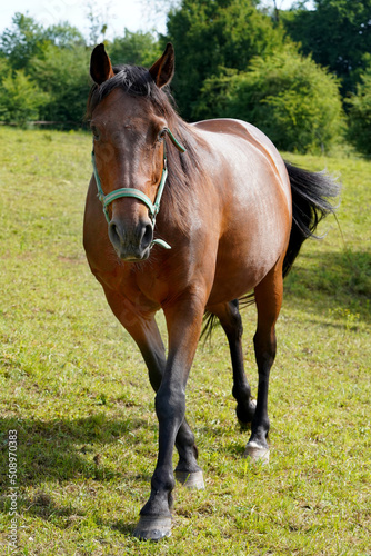 Fototapeta premium Reitpferd im Sommer auf der Weide