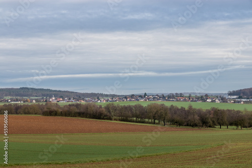 © totoa.grafie, Obraz premium Reizendes traditionelles Dorf Grosseicholzheim in Baden-Württemberg, Deutschland. Idyllische europäische Landschaft der Mosbach Region