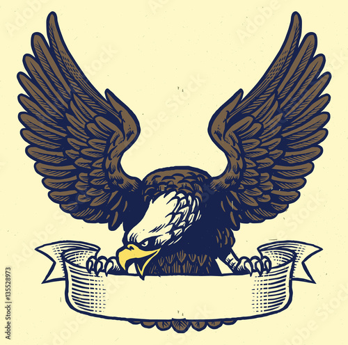© bazzier, Obraz premium ręka styl rysowania orła chwycić wstążkę