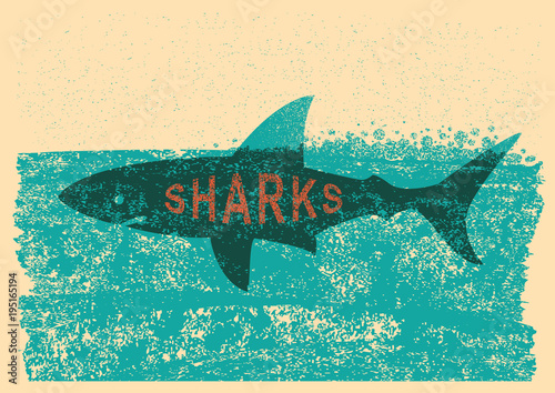 Fototapeta premium Rekin pływa w morzu na starym papierowym plakacie