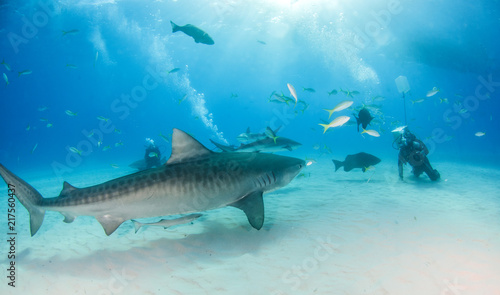 © Michael Bogner, Fototapeta premium Rekin tygrysi w Tigerbeach na Bahamach