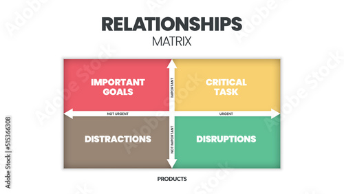 © Whale Design , Fototapeta premium Relationships matrix infographic presentation is vector illustration in four elements such as important goals, critical task, distractions and disruptions. Business banner for slide or marketing web.