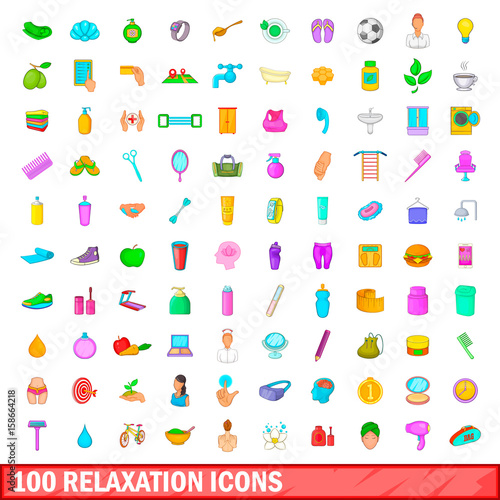 Fototapeta premium 100 relaxation icons set, cartoon style