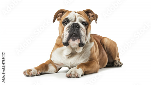 © Taylor, Fototapeta premium Relaxed Bulldog Lying Down on White Background
