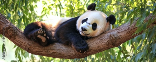 Fototapeta premium Relaxed giant panda resting in a tree.