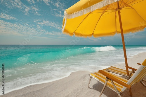 Obraz premium Relaxing beach day with vibrant turquoise wave under sunny sky, perfect...