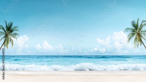 Fototapeta premium Relaxing beach paradise digital art of palm trees and gentle ocean waves in...