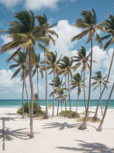 Fototapeta premium Relaxing beach scene with palm trees tropical paradise nature photography...