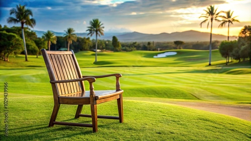 Fototapeta premium Relaxing chair by the golf course at a resort hotel