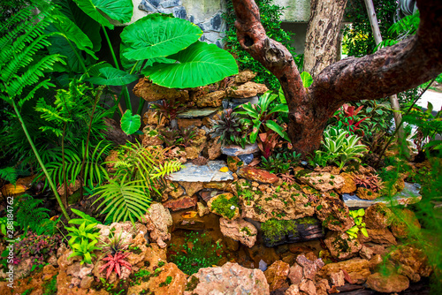 © ธันยกร ไกรสร, Obraz premium Relaxing corner in a coffee shop decorated in a tropical style.